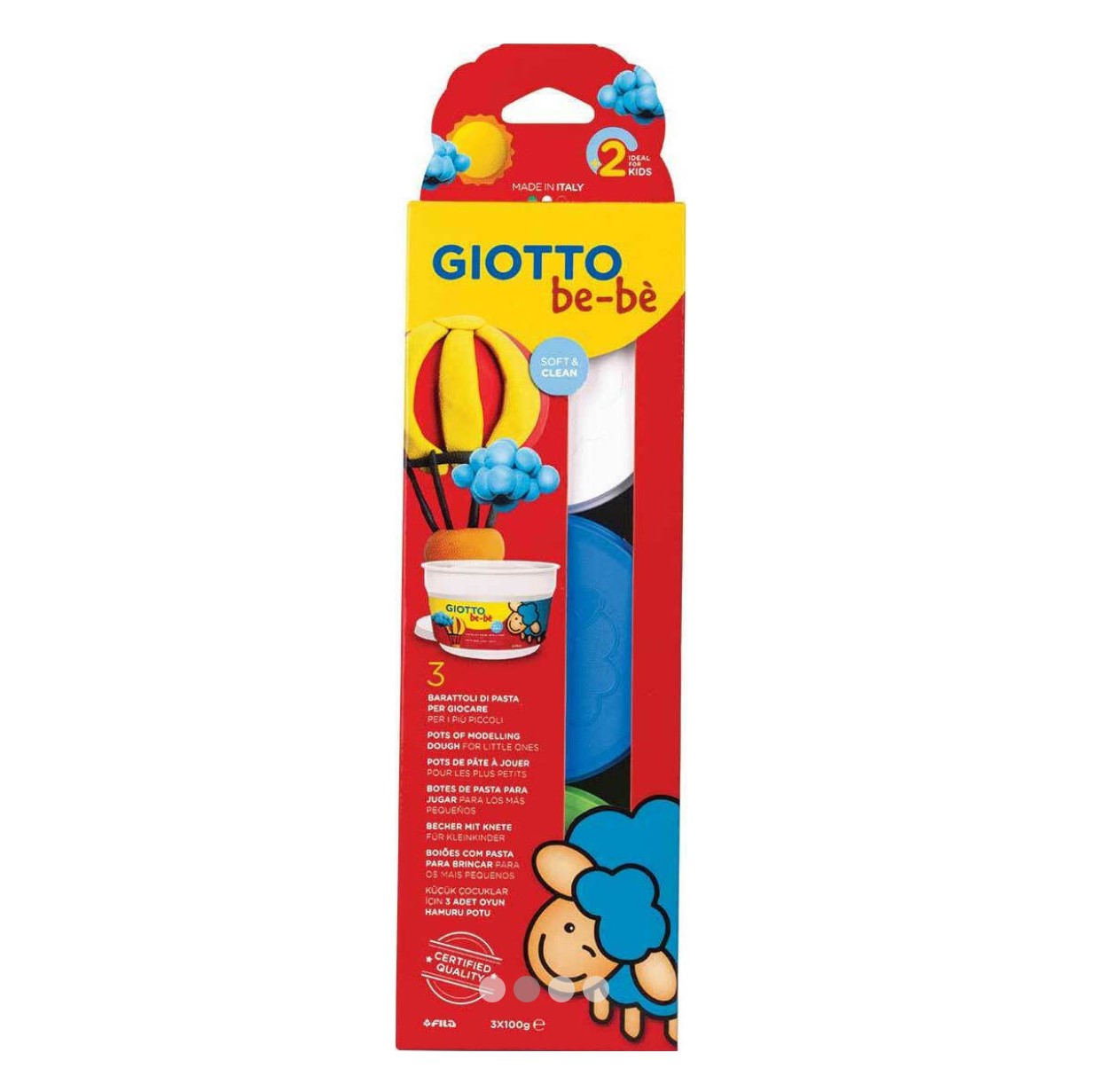 Ανακαλύψτε ένα νέο κόσμο δημιουργικότητας με Giotto Be-bè πλαστελίνη! Η συσκευασία περιέχει 3 x 100gr βαζάκια σε λευκό, πράσινο και μπλε χρώμα. Αφαιρείται εύκολα. Κατάλληλο για παιδιά ηλικίας από 2+ ετών.