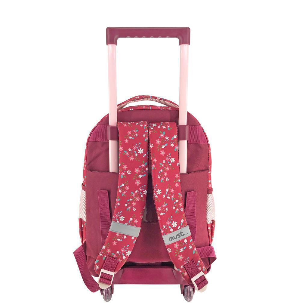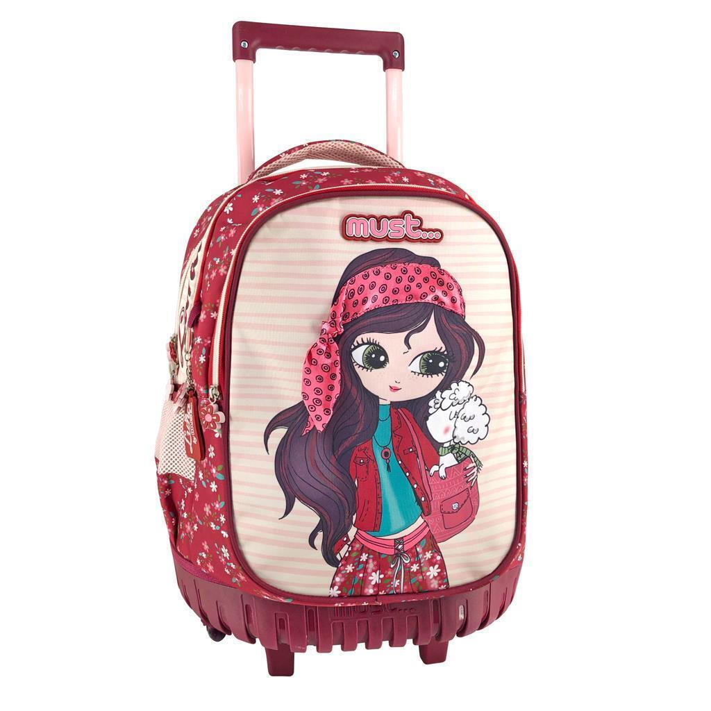Σχολική τσάντα η οποία μπορεί να φορεθεί στην πλάτη, κατάλληλη για παιδιά δημοτικού της εταιρίας Must σε κόκκινο χρώμα.