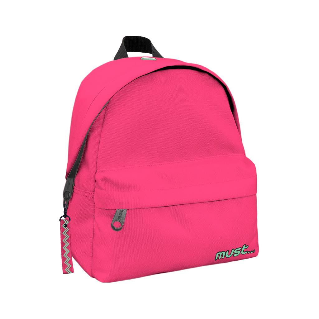 Σχολική τσάντα η οποία μπορεί να φορεθεί στην πλάτη, κατάλληλη για παιδιά νηπιαγωγείου της εταιρίας Must σε ροζ χρώμα.